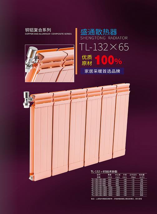 由于銅、鋁的導(dǎo)熱性能十分好,故銅鋁復(fù)合散熱器的散熱能力遠遠高于其它材料的采暖產(chǎn)品。